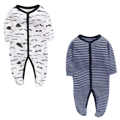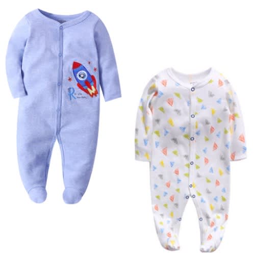 2 Pieces - 100% Soft Cotton Footed Long Sleeve Baby Sleepsuit - Boys