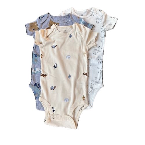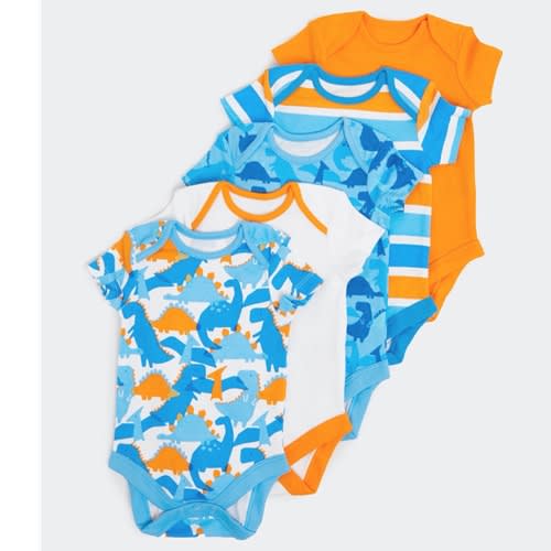With a vibrant mix of prints from fishes this pack of 3 bodysuits makes a great addition to their wardrobe.
