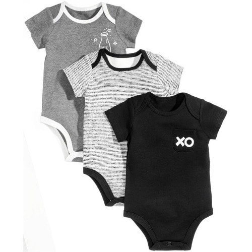 Stock up on comfy style for mixing and matching. This set of three cotton bodysuits from First Impressions features a mix of adorable designs.