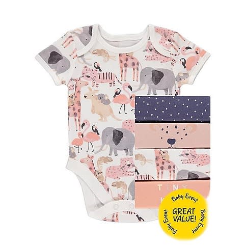 With five different designs featuring bold colours and terrific tiger prints, these bodysuits are perfect for layering under any little outfit. made from soft-on-skin cotton with features for easy dressing and nappy changes.