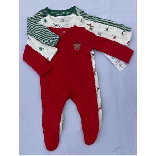 Unisex Xmas Print Design Sleepsuit - 3pcs