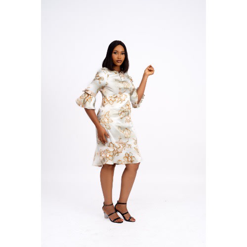 Buy Zipper Front Bra-cut Multi Brown Dress With Gathered Sleeve Attachments Lg-9037 in Nigeria
