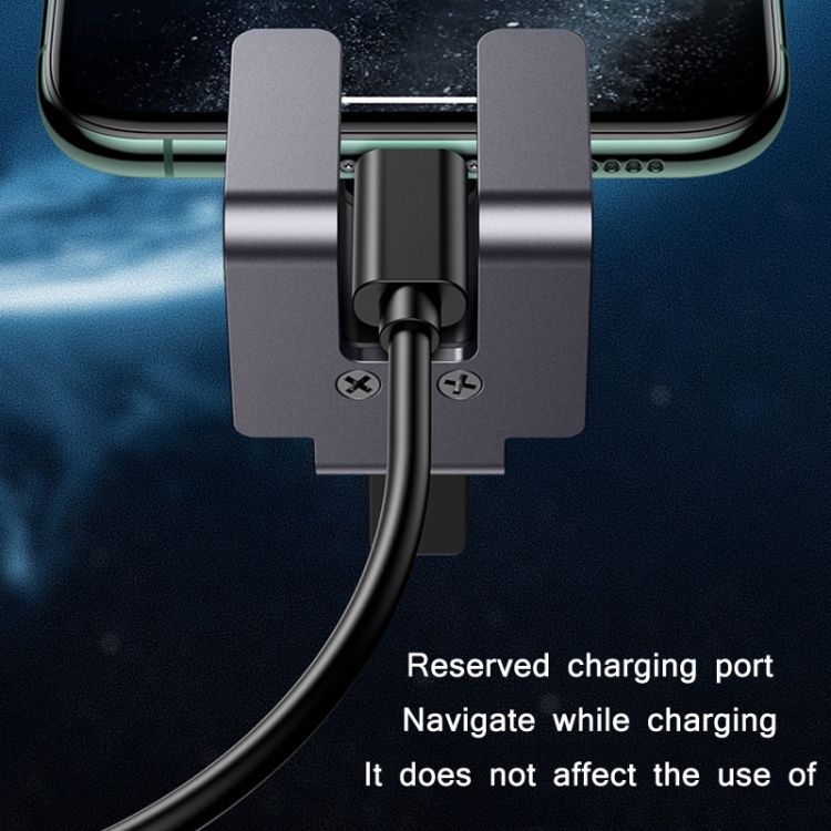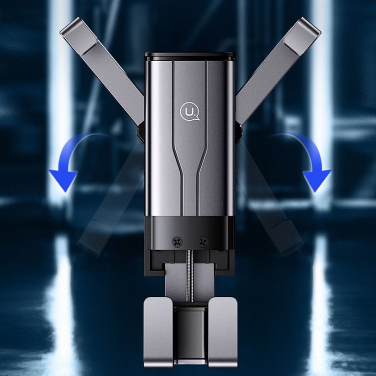 2. Use the gravity of the mobile phone to pull the clamping arms on both sides to rotate and retract, and lock the hine firmly