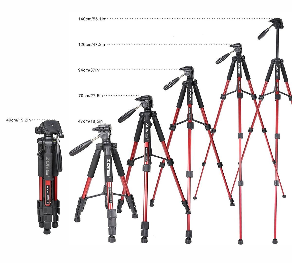 - Tripod Max Height: 55" / 140cm