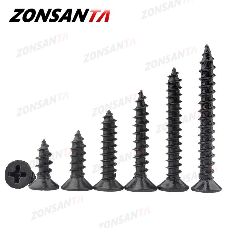 1X ZONSANTA 50Pcs M1.4 M1.7 M2 M2.3 M2.6 M3 M4 Carbon steel Black Cross recessed countersunk Flat head tapping screws Wood Screw