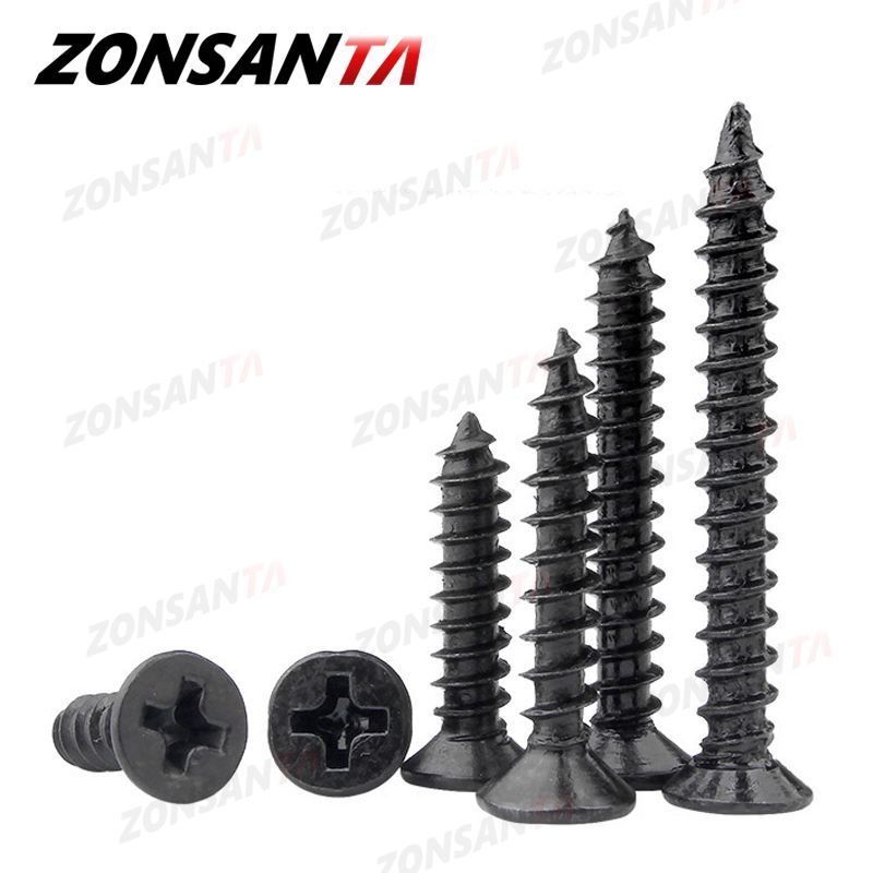 ZONSANTA 50Pcs M1.4 M1.7 M2 M2.3 M2.6 M3 M4 Carbon steel Black Cro receed countersunk Flat head tapping screws Wood Screw