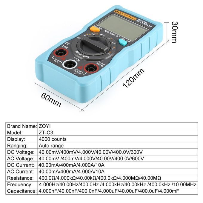 ZOYI ZT- 3 N V Digital Multimeter A / Voltmeter Ammeter Diode Tester-Blue