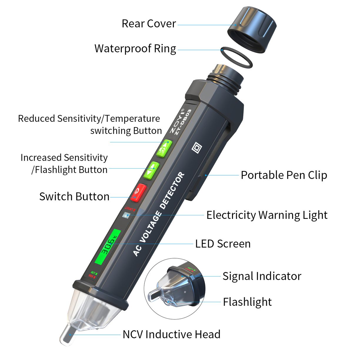 [High Efficiency] Press and hold the power button for two seconds to turn it on, as long as the voltage is detected, the LCD analog bar in the test pen will display the strength of the measured value, and the buzzer will alarm. When not in use or no voltage is detected, the test pen will enter a sleep state, and it will automatically shut down if there is no operation or no signal detection within 15 minutes.