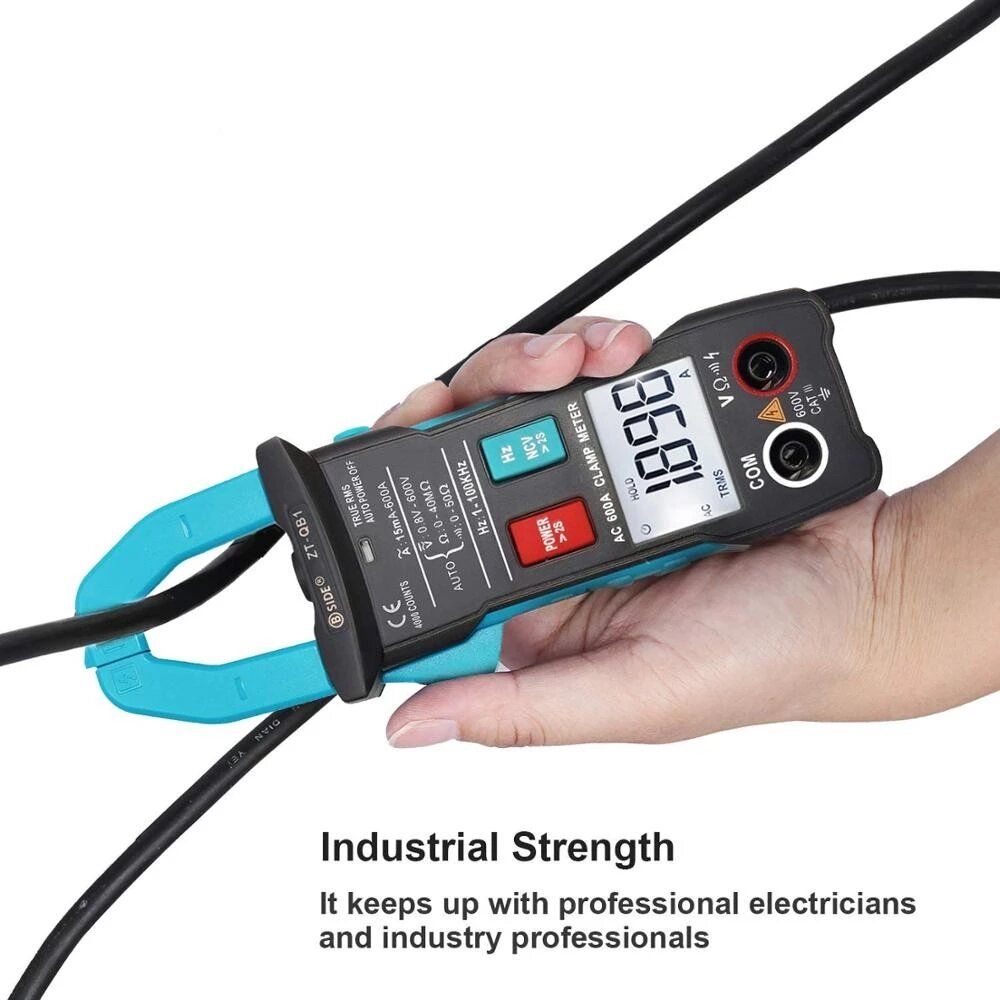 [600A Clamp Meter]: The clamp meter measures AC current up to 600A without interrupting the circuit.